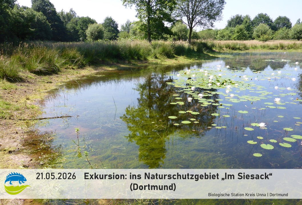 Das Naturschutzgebiet "Im Siesack" bietet aufgrund seiner Biotopausstattung mit einem gewässerreichen Wald-Offenland-Komplex und einer strukturreichen Industriebrache ideale Lebensräume für eine große Zahl an teils sehr selten gewordenen Tier- und Pflanzenarten. Zur Pflege werden Teilflächen extensiv mit Heckrindern beweidet. Auch Schafe kommen bei der Biotoppflege zum Einsatz. Auf der Exkursion werden verschiedene Artengruppen (Amphibien, Reptilien, Fledermäuse) vorgestellt.